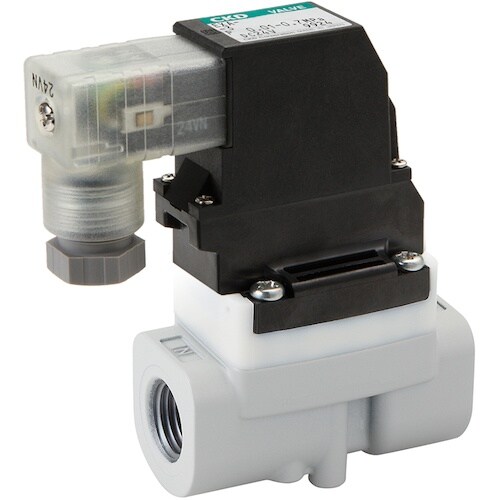 圧縮空気制御用の小形パイロット式電磁弁です。エアブロー用途に最適で装置、システムの環境対応に貢献します。消費電力0.6Wの省エネ形アクチュエータを搭載したため、PCダイレクト駆動が可能です。