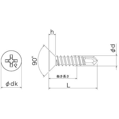寸法(mm)d:M4 | 頭部径(mm):8.0 | 頭部厚さ(mm):2.1 | 適合ドライバー:#2 | 首下長(mm):45 | ドリル外径(m…