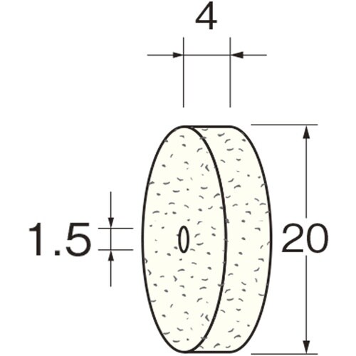 幅(mm):20 | 形状:ホイール型 | 最高使用回転数(rpm):15000 | 色:白 | 穴径(mm):1.5 | 厚さ(mm):4 | その…