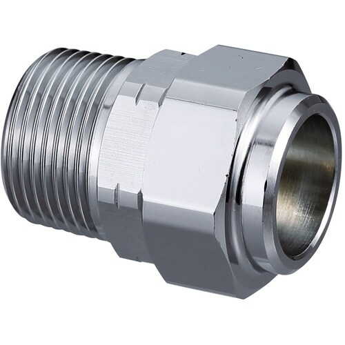 専用ツバ出し工具不要でフレキ管に接続可能です。テーパおねじ部は管端コアに対応します。給水・給湯・暖房・融雪用。 |