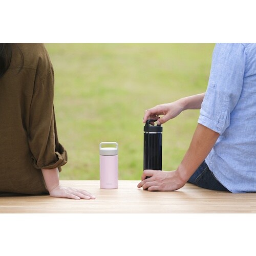 携帯しやすいハンドル付きのマグボトルです。スクリュータイプです。氷も入れやすい広口です。パーツは本体・ふた・パッキンのみで、分解して洗えます。お手入れが簡単で、衛生的に使えます。飲料の保冷、保温に。 |