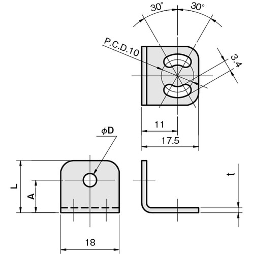 光ファイバセンサ(ネジ型)を取り付けるためのブラケットです。ネジ型 M3、M4、M6サイズに対応です。コンパクトな設計で省スペースでの設置が可能です。 |