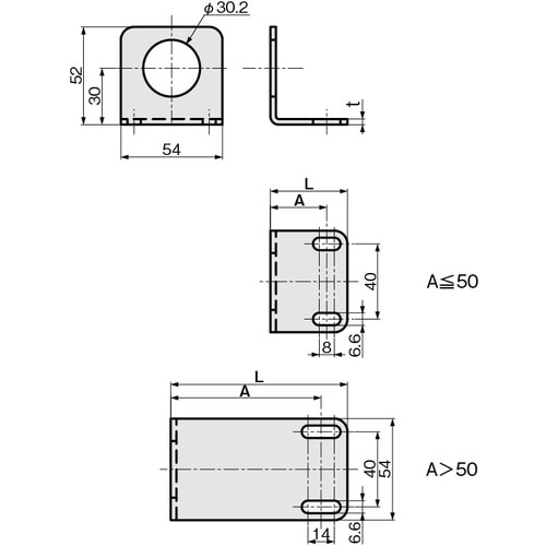 近接センサ(ネジ型)を取り付けるためのブラケットです。ネジ型 M5、M8、M12、M18、M30サイズに対応です。L型形状です。近接センサのスライド量(オフセット量)をお選びいただけます。