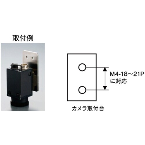 画像センサなどのCCDカメラに合わせた取付ブラケットです。M4−P18ー21mmのカメラ取付台に対応です。丸穴と長穴の組み合わせにより、取付時の位置ずれを防ぎます。 |