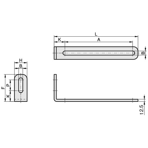 当社シングルプレートと組み合わせることでセンサの位置調整が可能です。スライド量(オフセット量)に合わせて長穴の長さをお選びいただけます。コンパクト設計で省スペースな取り付けができます。L型形状です。