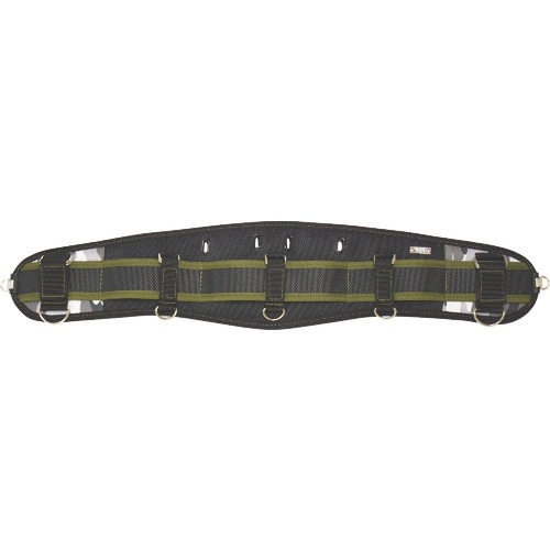 グリーンと迷彩が魅力的なファッション性です。全てのベルト通し部が可動&着脱式で腰回りを自由にカスタマイズできます。5点留め具方式でベルトが垂れずにシッカリ固定可能します。裏面には滑り止め付きです。 |
