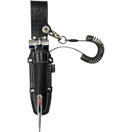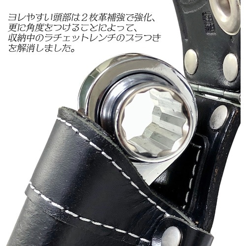 ツールがしっかり収納できるサイズで設計・製造され、太陽光による変色や老化を防ぐ黒革素材を採用しています。 |