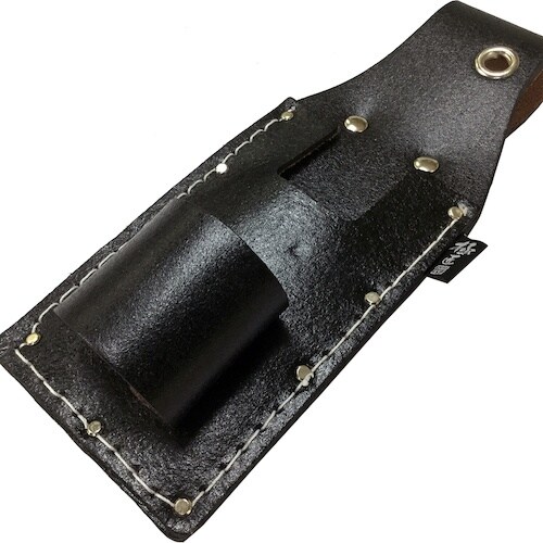 ツールがしっかり収納できるサイズで設計・製造され、太陽光による変色や老化を防ぐ黒革素材を採用しています。 |