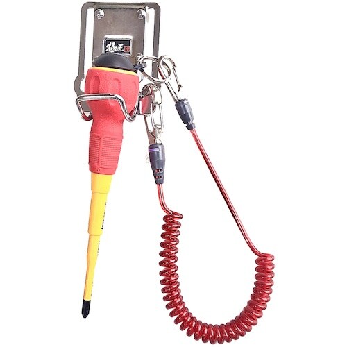 60mm幅までのベルトは本体に通してがっちり装着可能が出来、バネ鋼の差込口からベルトに挿入すればワンタッチ装着も可能です。ラチェットレンチ・電工型ドライバー等の収納に。 |