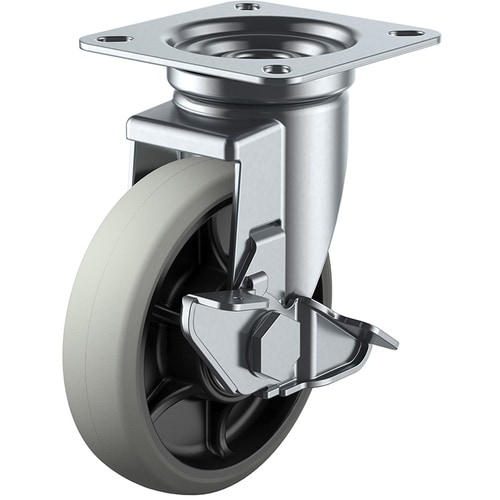 標準的な大型キャスターで重量物の運搬に数多く使用されています。軽量で耐油性、耐摩耗性に優れたナイロンホイルウレタン車輪を使用しています。台車、ワゴンなどに。 |