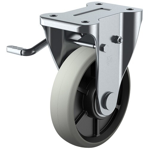 標準的な大型キャスターで重量物の運搬に数多く使用されています。軽量で耐油性、耐摩耗性に優れたナイロンホイルウレタン車輪を使用しています。台車、ワゴンなどに。 |