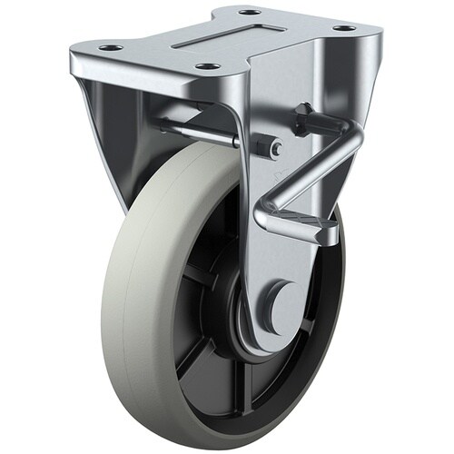 標準的な大型キャスターで重量物の運搬に数多く使用されています。軽量で耐油性、耐摩耗性に優れたナイロンホイルウレタン車輪を使用しています。台車、ワゴンなどに。