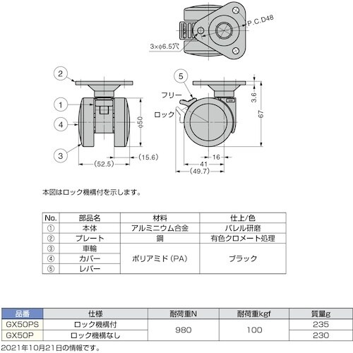 スガツネ工業 SUGATSUNE (200133172)GX50Pキャスター A010-3482