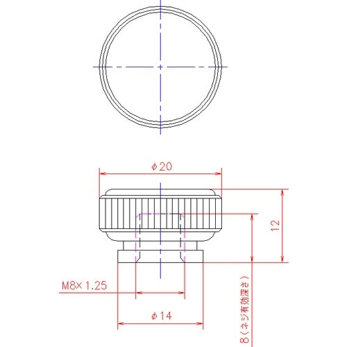 その他仕様: | ねじ寸法:M8×1.25 | 寸法_A1(mm):8 | 寸法_A2(mm):12 | 寸法_φE1(mm):20 | 寸法_φE2…
