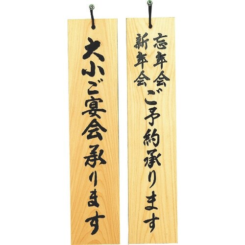 表示内容:大小ご宴会〜−新年会 忘年会ご予約〜 | 取付仕様:ひも付 | 縦(mm):450 | 横(mm):100 | 厚さ(mm):10 | 色:…