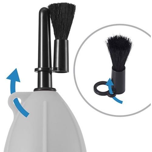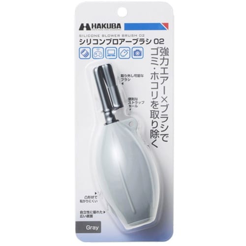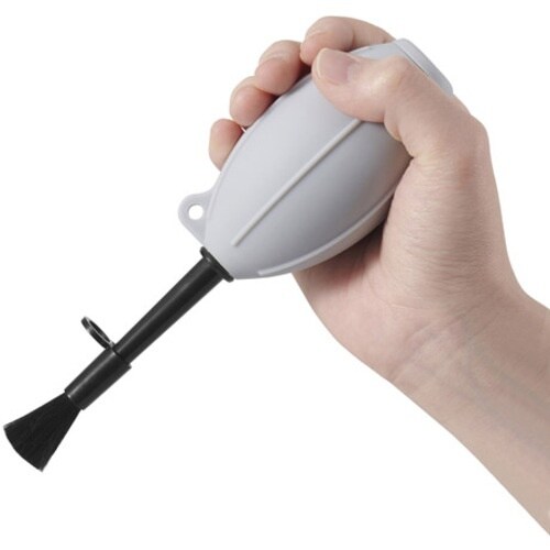 レンズやカメラ、OA機器などのクリーニングに適したシリコン製ブロアー。ノズルの先端にブラシを装着可能で、ポンプからの送風とブラシの両機能でゴミを取り除くことが可能。 |