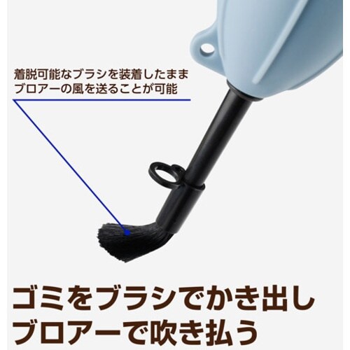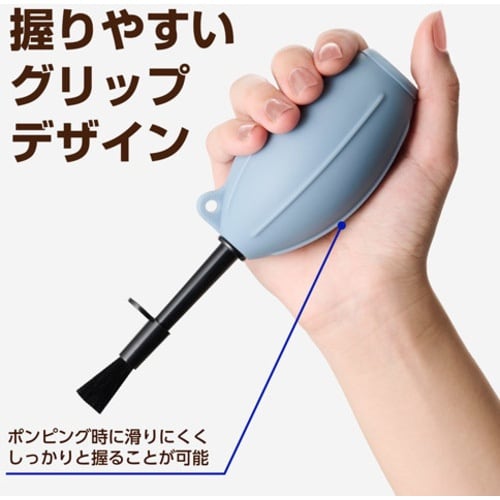 レンズやカメラ、OA機器などのクリーニングに適したシリコン製ブロアー。ノズルの先端にブラシを装着可能で、ポンプからの送風とブラシの両機能でゴミを取り除くことが可能。 |