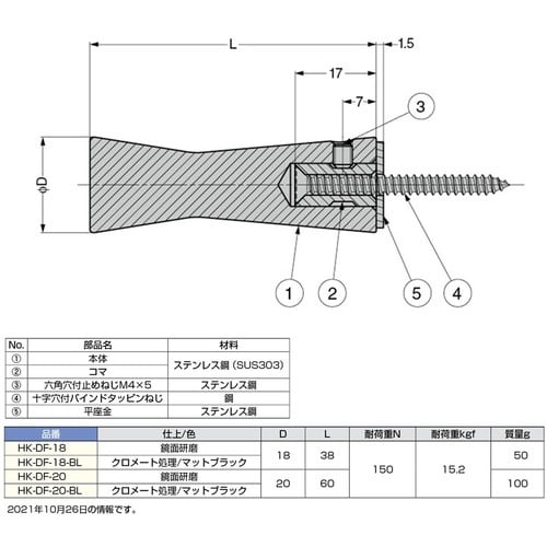 その他仕様:鏡面研磨 | セット付属内容:十字穴付皿タッピンねじ4×50 | セット付属内容:平座金 | 単位:1個