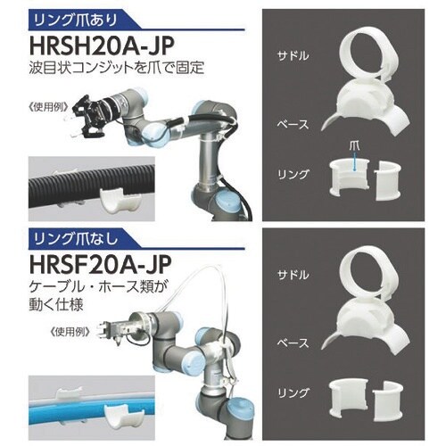ケーブル・ホース類が動く仕様です。ロボットアーム部に取付け、ケーブル・ホース類のサポートにご使用いただけます。 |