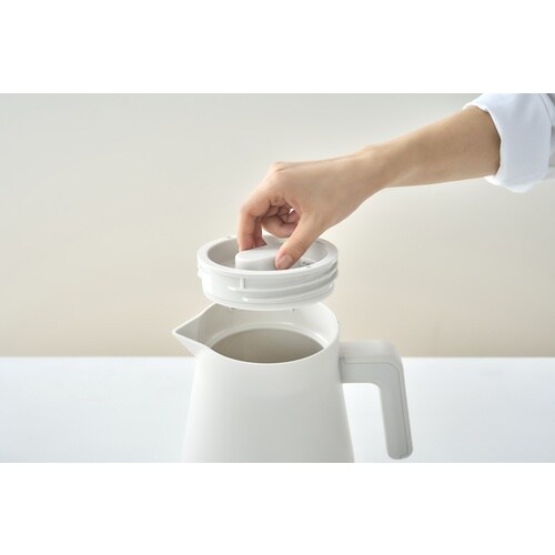 カップ1杯(140mL)約60秒でスピード沸騰、シンプル機能で使いやすい電気ケトルです。転倒湯漏れ防止構造で、倒れてもお湯がこぼれにくい安心設計です。湯沸かしに。 |