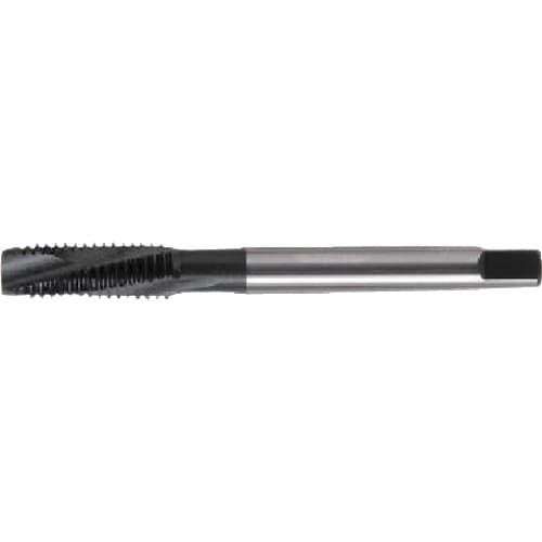 全体溝が左螺旋状溝となっているので、切粉が進行前方へ残らず排出されます。溝が浅く、タップの心厚が大きいので、ねじれ強度が強く折れにくいです。ホモ処理をしています。加工ねじ:メートルねじ通り穴専用。 |
