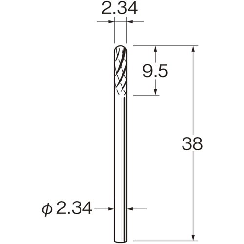 刃径(mm):2.34 | 刃長(mm):9.5 | 軸径(mm):2.34 | 全長(mm):38 | 最高使用回転数(rpm):40000 | オ…