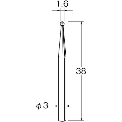 刃径(mm):1.6 | 軸径(mm):3 | 全長(mm):38 | 最高使用回転数(rpm):60000 | オール超硬・ロー付:オール超硬 | …