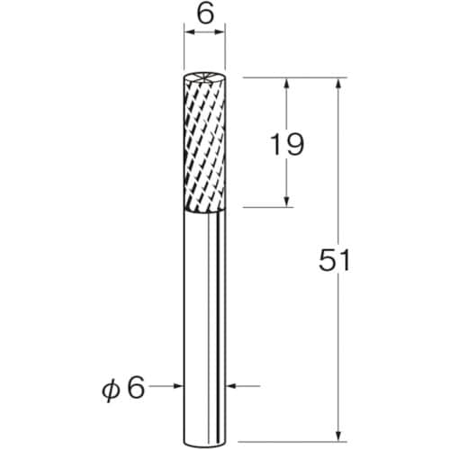 刃径(mm):6 | 刃長(mm):19 | 軸径(mm):6 | 全長(mm):51 | 最高使用回転数(rpm):22000 | オール超硬・ロー…