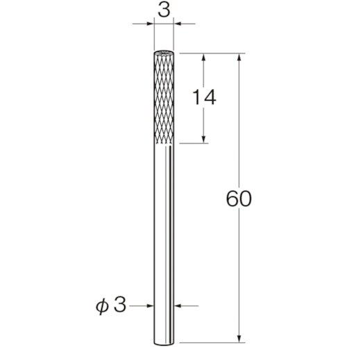 刃径(mm):3 | 刃長(mm):14 | 軸径(mm):3 | 全長(mm):60 | オール超硬・ロー付:オール超硬 | その他仕様:クロスカッ…
