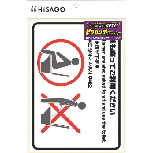 しっかり貼れて、きれいにはがせるステッカーです。施設内や仮設、イベントなどの一次的表示にも便利です。英語・中国語・韓国語の表記も記載しています。 |