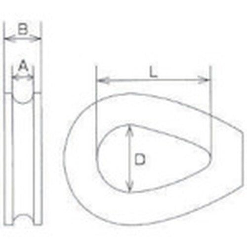 D(mm):13 | L(mm):27 | A(mm):5 | B(mm):8.5 | 使用ロープ径(mm):4 | 材質:ステンレス(SUS304)…