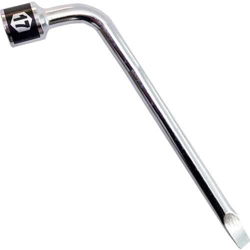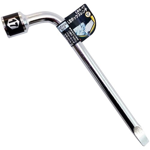 シンプルなL型デザインのホイールナット用ボックスレンチです。先端部はタイヤレバーになっており、ホイールキャップを外す事が出来ます。高級感あふれ、耐食性のあるフルポりッシュ仕上げを採用しました。 |
