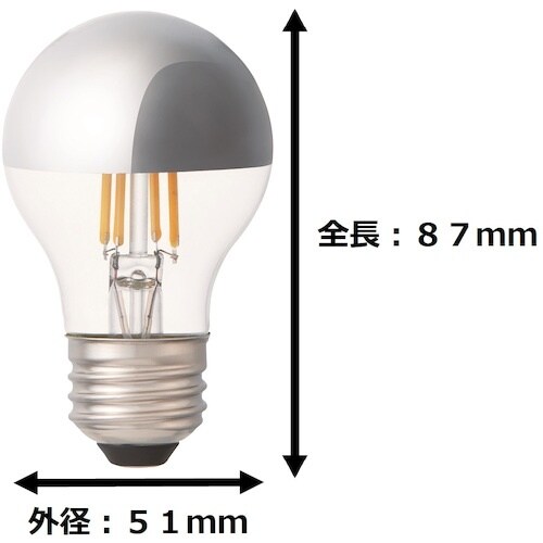 頭部にアルミニウムの反射鏡を付けた電球で、間接照明などで柔らかな光を得るのに適しています。 |