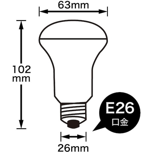 明るさ(lm):570 | 光源色:昼白色 | 外径(mm):63 | 全長(mm):102 | 消費電力(W):5 | 口金:E26 | 定格寿命(…