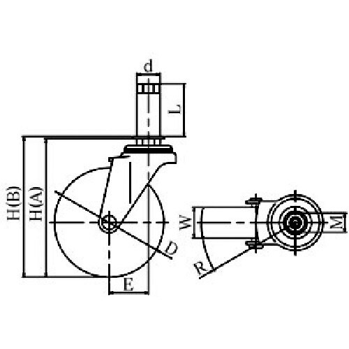 許容荷重(daN):30 | 許容荷重(kgf):30.6 | 車輪径D(mm):40 | 車輪幅(mm):18 | 取付高H(mm):60 | 軸長…