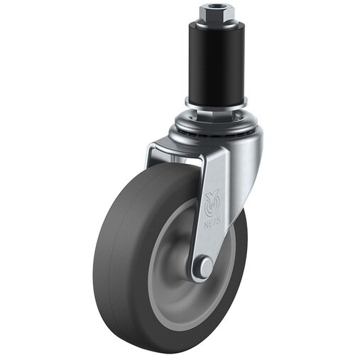 標準的な小型キャスターで、軽量物運搬用のワゴンやラックなどに最適です。軽量で床面を汚しにくいエラストマー車輪を使用しています。軽量なパイプ組立式ラック、屋内運搬用機器ラックなどに。 |