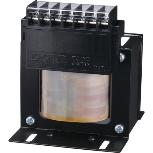 単相、複巻タイプです。50/60Hz両用になります。耐電圧は1.5KVです。E種絶縁となります。JIS C−6436適用です。100V対200Vの複巻アップトランスです。100Vを200Vにします。 |