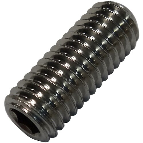 先端の中央にくぼみをつけた一般的な止めねじです。ねじ先を相手部材に押し付けて部材を決められた位置に固定するときに。