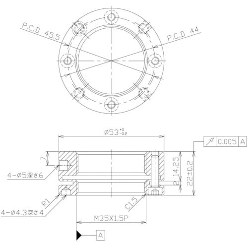 その他仕様:キャップボルト規格4−M4×16 | 硬度:HRC28−32 | ネジ精度:ISO 4H | 振れ精度:5μm以下 | 材質・仕上げ:クロ…