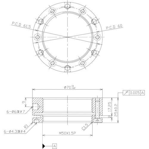 その他仕様:キャップボルト規格6−M4×18 | 硬度:HRC28−32 | ネジ精度:ISO 4H | 振れ精度:5μm以下 | 材質・仕上げ:クロ…