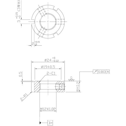 精密ロックナットは、ベアリング固定用ナットですが、精度を要する回転体にその効果を充分に発揮できます。軸方向に対しセットスクリューが直角になっており、且つ3分割(120度等配)の設計となっております。