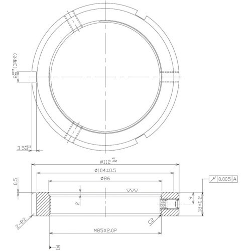 精密ロックナットは、ベアリング固定用ナットですが、精度を要する回転体にその効果を充分に発揮できます。軸方向に対しセットスクリューが直角になっており、且つ3分割(120度等配)の設計となっております。 |