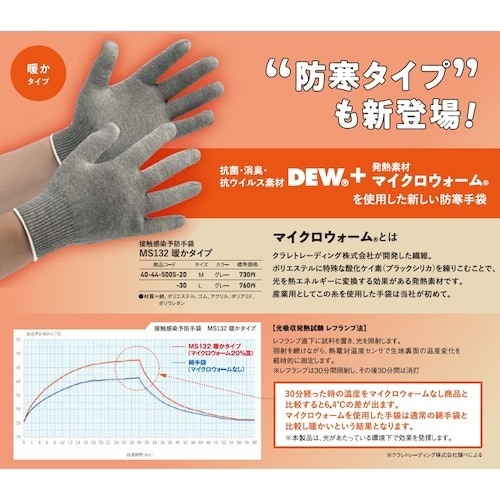 ミドリ安全 ミドリ安全 接触感染予防手袋 暖かタイプ MS132 グレー L A011-3694