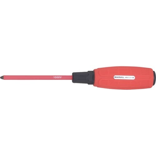二重絶縁被膜:安全性・耐久性が向上し、外側の絶縁被覆の破損が分かりやすい様に内側に色の違う被膜を使用しています。1000Vの絶縁ドライバーです。電気・通信設備工事などの作業に。 |