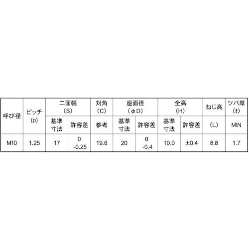 呼び径:M10 | 材質・仕上げ:ステンレス(303、304、XM7等) | 表面処理:生地(または標準) | 単位:1Pk(1個)