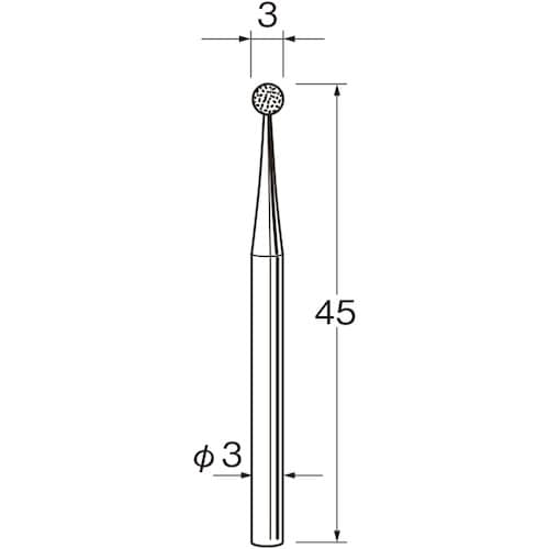 粒度(#):150 | 刃径(mm):3 | 軸径(mm):3 | 全長(mm):45 | 最高使用回転数(rpm):210000 | 単位:1袋(1…
