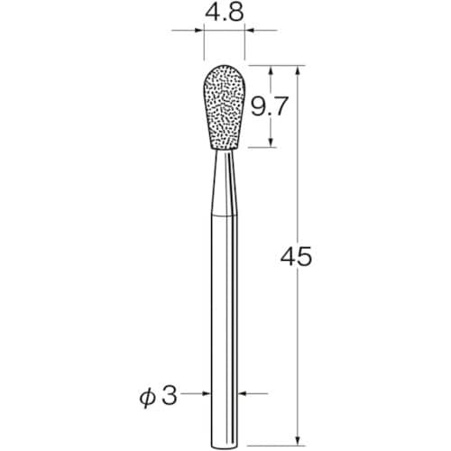 粒度(#):150 | 刃径(mm):4.8 | 刃長(mm):9.7 | 軸径(mm):3 | 全長(mm):45 | 最高使用回転数(rpm):6…