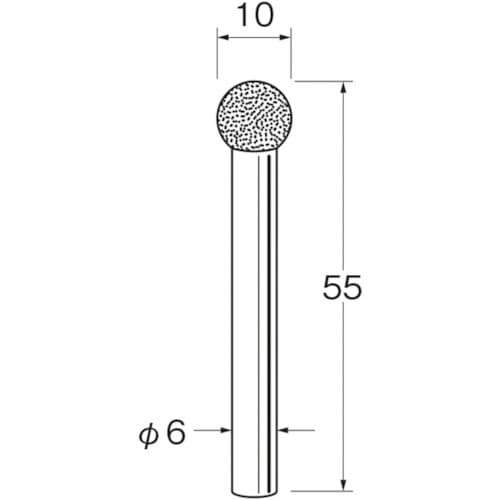 粒度(#):120 | 刃径(mm):10 | 軸径(mm):6 | 全長(mm):55 | 最高使用回転数(rpm):93000 | 単位:1袋(1…