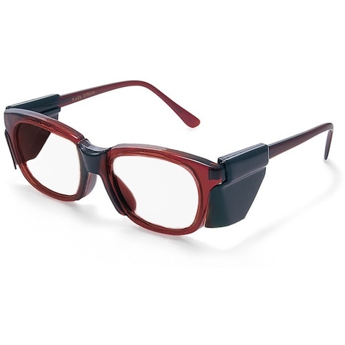 シンプルな形状の側板付きモデルです。飛来物、浮遊粉じん、液体飛まつなどから目を保護します。熱硬化性樹脂CR−39を基材したレンズです。耐熱性、表面摩耗性、耐薬性に優れています。レンズの交換が可能です。 |
