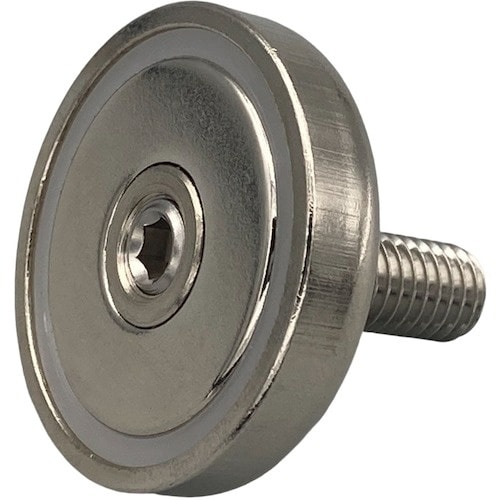 おねじタイプ、六角ナットを使用し固定することも可能です。マグネット側は六角穴になっている為、六角レンチで締め付けることが可能です。ネジ穴を利用し製品や冶具等の吸着に。